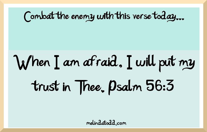 We are combatting the enemy! With one verse everyday! Join us. Each verse will also be shared on the Facebook Fan Page. Be encouraged sister! Jesus cares for YOU. Feel free to share these verses!