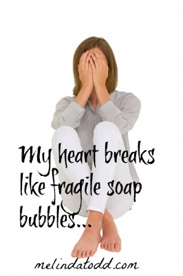 My heart breaks like fragile soap bubbles but not likely to show on the outside. A poker face I have perfected. Smile and nod. Story of my life. Pretend. Feelings are not allowed unless they are happy and pretty.